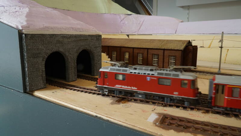 De minst spectaculaire van het viertal. Productie tunnelingang, maar wel met wat leuke details straks met bovenleiding afspanning. Beetje gekunsteld in de hoek van de baan om Berasur maar zo lang mogelijk te maken. Landschappelijk straks nog wel een uitdaging om deze geloofwaardig over te laten komen zo naast de locloods.