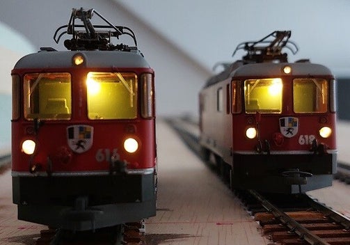 Nieuw binnenwerk voor deze golden oldies. BEMO levert onder het nummer 1258 021 nieuwe chassis voor oude GE 4/4 II locomotieven. Deze nieuwe chassis zijn uitgerust met 3+1 verlichting (3 aan de voorkant, 1 rechtsonder aan de achterkant, ook uitschakelbaar, cabineverlichting en een fluisterstille klokankermotor. Een hele verbetering tov de oude 3 pool motortjes, alhoewel die ook zeer betrouwbaar zijn.