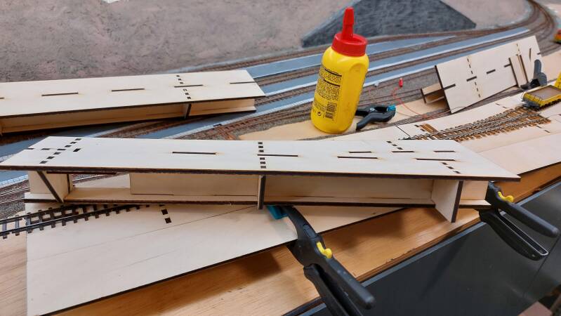 En als laatste een foto van de lasersnijder aan het werk met het snijden van alle plankjes voor een 9.5 graden wissel: